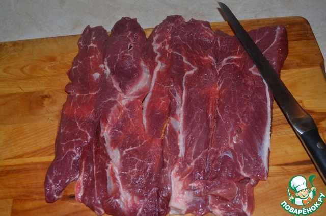 Мясо обсушить и надрезать кусок вправо и влево. Раскройте кусок, как книгу. Если в процессе резки вы дорежете до дыр, не унывайте, у нас с вами получится отличный рулет!