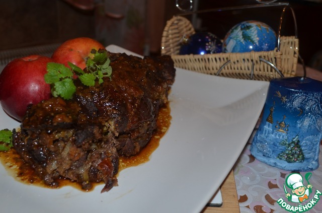 Мясо вынуть из пакета, полить вкуснейшим соком, образовавшимся в пакете за время жарки.