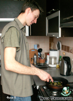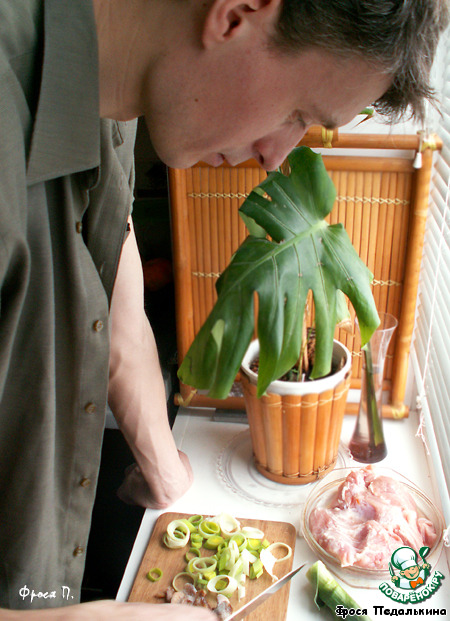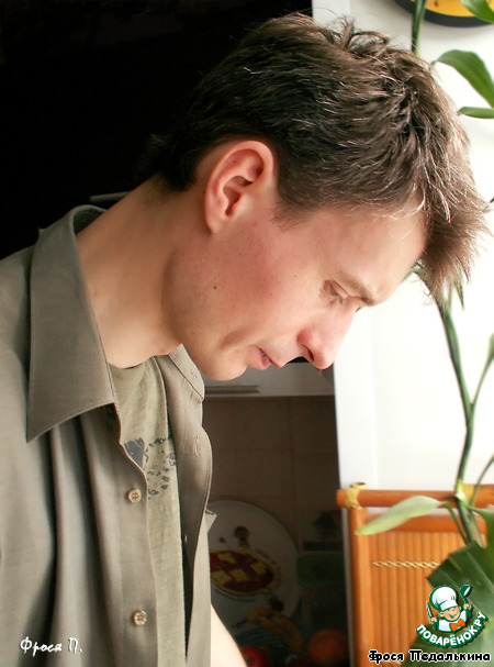 Готовит это блюдо мой муж, который никак полностью в кадр не попадает. Поэтому покажу его сразу, это его руки в кадре. :-D