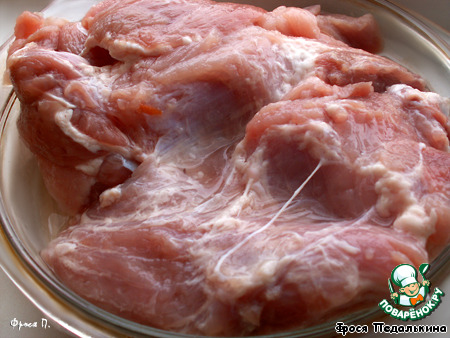 Свинину обмыть, обсушить, очистить от лишнего жира.