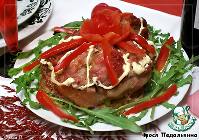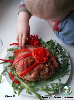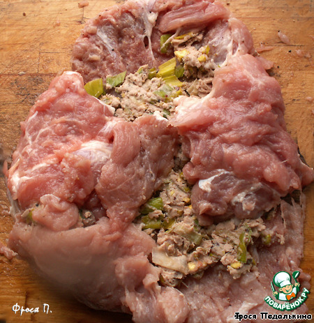 | Фаршированное мясо в нашей семье любят, вот только рулеты поднадоели. Опробовали "цветочный" вариант фарширования - очень понравилось! Свинина, фаршированная паштетом с фисташками, грибами и луком-пореем на конкурс "Весна в сердце". |