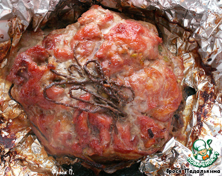 Заворачиваем в фольгу, выпекаем при 180 гр 25 минут, потом фольгу раскрываем и оставляем до подрумянивания еще на полчаса, периодически поливая образующимся соком.