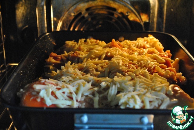 Теперь сыр натираем на тёрке, половину сыра - 100 грамм, выкладываем сверху на наши перчики, если у вашей формы есть крышка - закрывайте, быстрее приготовится. Если нет, как и у меня, - не страшно. Ставим в духовку на 180 градусов. Через 15 минут достаем, переворачиваем перцы, досыпаем оставшийся сыр, выпекаем еще минут 10. Основной показатель готовности - мягкие перцы. Приятного аппетита!