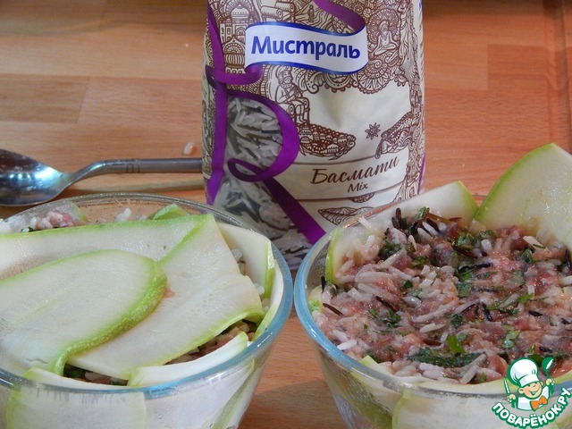 Выкладываем пластины кабачка, на них плотно фарш, закрываем кабачком и ставим в духовку при темп.200 градусов на 40-45 минут. Вначале приготовления формы можно прикрыть фольгой.