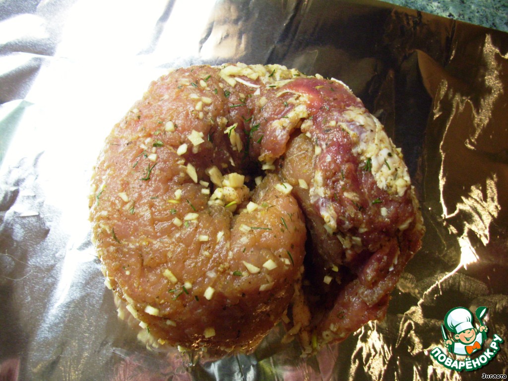 Фольгу плотно завернуть и отправить мясо в предварительно разогретую до 180 градусов духовку. Готовить мясо 1-1,5 часа, в зависимости от духовки. Для образования румяной корочки можно раскрыть фольгу незадолго до готовности. Я делать этого не стала, желая сохранить большое количество выделившегося сока и максимум аромата в блюде.