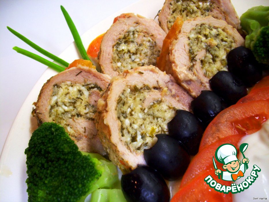 Мясной рулет с зеленым творогом