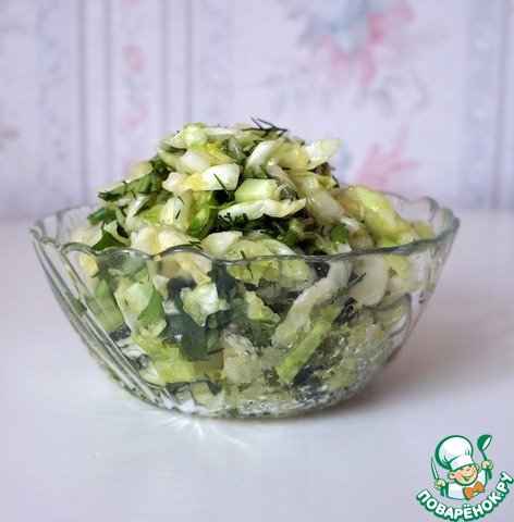 | Очень легкий, освежающий и витаминный салатик. Вкусный и простой в изготовлении. Из обязательных ингредиентов только капуста, да и то необязательно молодая. Съедается сразу по целой миске. А уж в полезности такого салата и сомневаться не приходиться. Может кто-то откроет новое для себя, а именно: полезнейшее льняное (полезнее оливкового) масло Пробуйте на здоровье! |