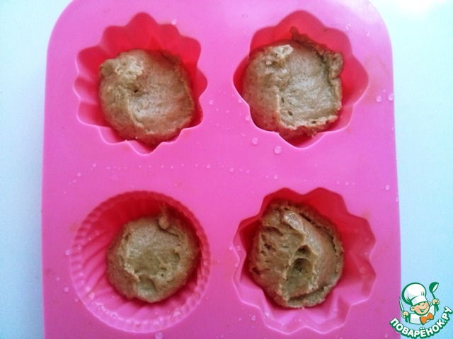 Перемешиваем и выкладываем тесто ложкой в силиконовые формочки, смоченные водой. Формочки заполняем наполовину. Ставим в духовку, разогретую до t 175-180С и выпекаем 25-30 мин.