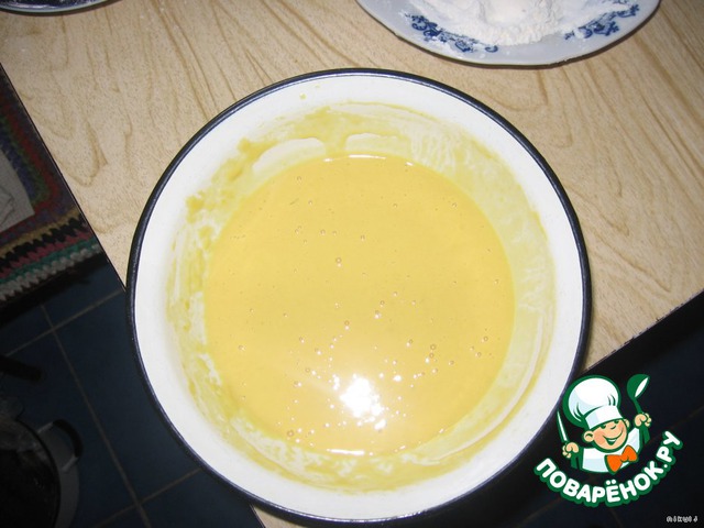 Потом - в кляр (яйца взбить, добавить молоко, соль, перец и муки до консистенции густой сметаны) и выкладываем на разогретую сковородку, жарить на растительном масле на среднем огне под крышкой до готовности.