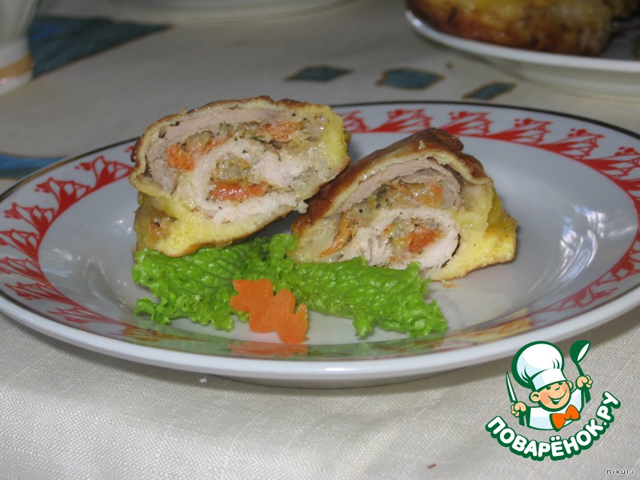 | Отбивая свиную филеечку, еще не знала, что бы с ней такое сотворить. Решила сделать крученики по летнему варианту - с овощами!!! Получилось сочно и очееень вкусно! И красиво!!! |