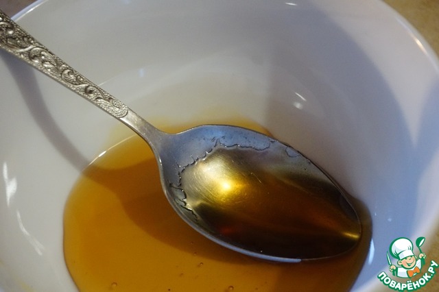 Пока ребра варятся, готовим глазурь-маринад. Берем 2 ст. л. темного меда (у меня каштановый)