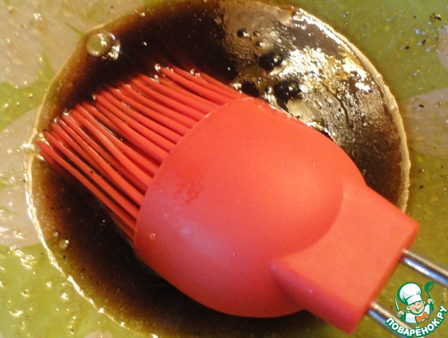 Обмазываем нашу вырезку масляно-соевой эмульсией.