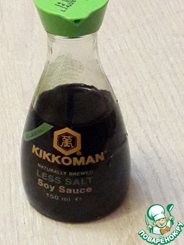 При помощи кисточки смажьте кусочки свинины соевым соусом, закройте форму плёнкой и уберите мариноваться на несколько часов