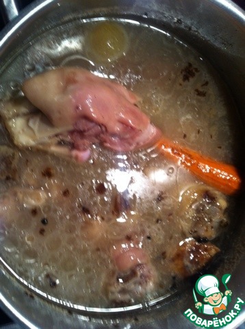 Довести до кипения, варить в течение часа. Оставить в полученном, душистом бульоне на 2-3 часа.