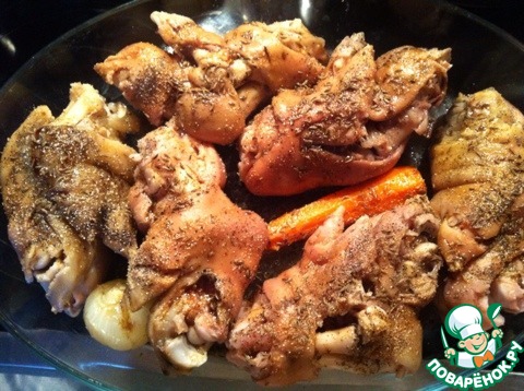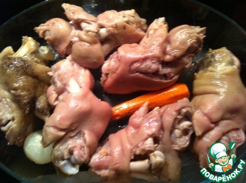 | Прикупила свиные ножки. Маленькие, беленькие. Думала, что приготовить, смотрела на Поваренке рецепты, потом решила готовить по своему. |