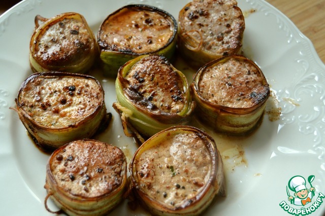 Обвернуть каждое мясное кольцо луком. Обвязать