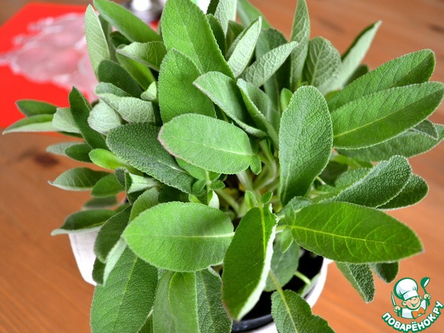 При приготовлении этого блюда будем использовать свежие листики шалфея. Большинство из нас знакомы с лекарственными свойствами этого растения, но и в кулинарии он находит широкое применение.