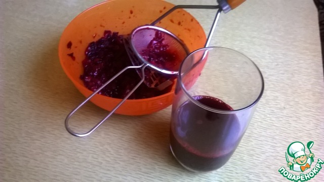 Из вишни отжать сок. У меня была замороженная вишня с дачи. Я разморозила, подавила толкушкой и процедила. Из 200 гр получилось 125мл сока. Из пакетированного сока мне кажется ничего не получится.