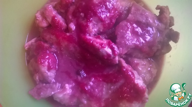 Половину соуса влить в мясо, дать настояться минут 15. Оставшимся соусом поливать мясо при подаче. Готово!!!