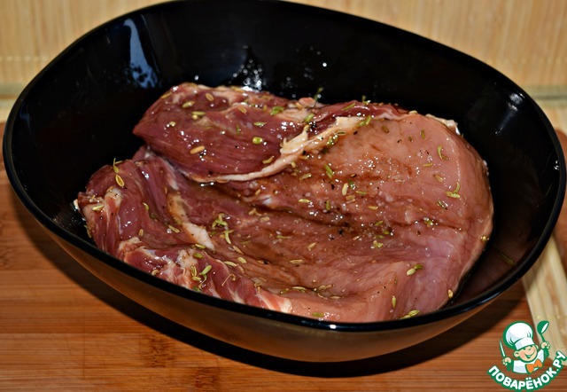 Буду очень рада, если вам понравится рецепт. Мясо получается очень нежное, сочное. В холодном виде тоже весьма неплохо! Да, чуть не забыла! Этот мой первый рецепт на сайте, поэтому... СУДИТЕ СТРОГО!