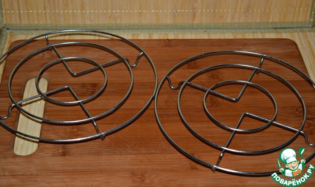 На форму положить решётку. У меня специальной решётки нет, поэтому я приспособила вот такие подставки под горячее.
