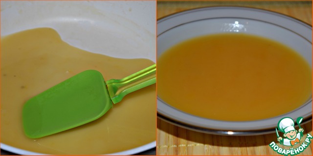 Приготовим соус. Муку прогреть на раскаленной сковороде в течение 1 минуты. Добавить сок одного апельсина и яблочный сок, который остался от замачивания кураги.