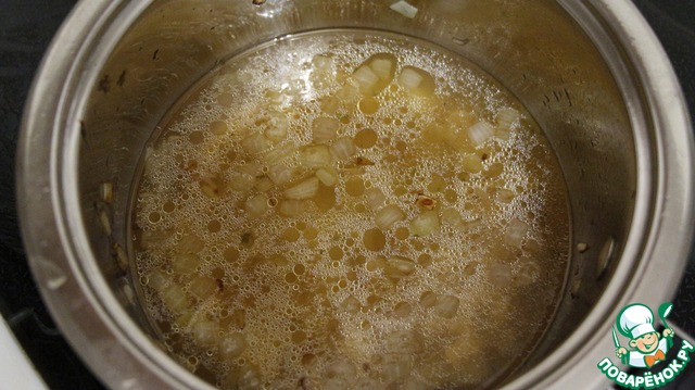 Добавляем 200 мл мясного бульона и выпариваем его вдвое