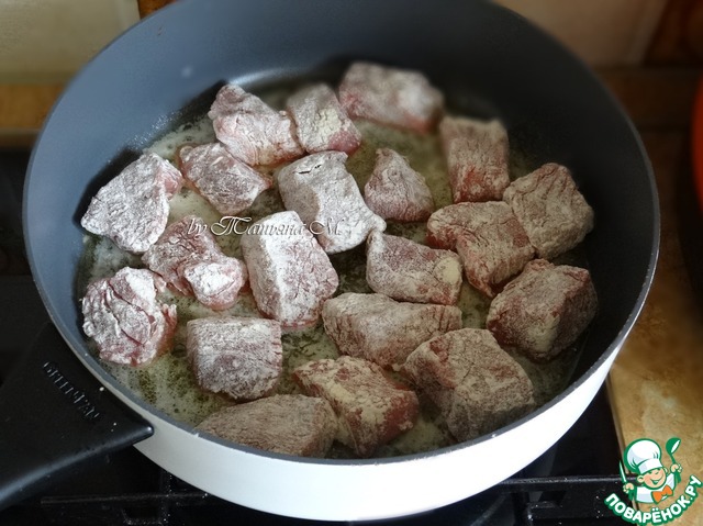Обжаривать говядину на сливочном масле до корочки со всех сторон на сильном огне;