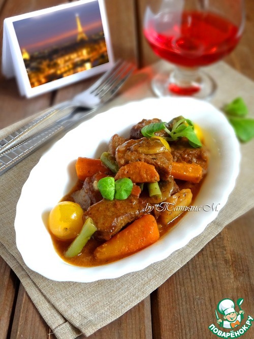 Говядина с шампиньонами и овощами "Бёф бургиньон"