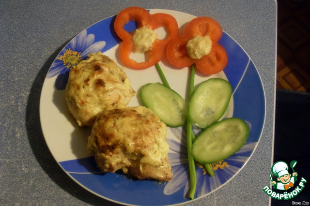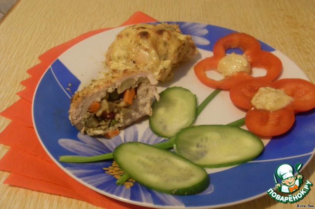 | Странное название для блюда - первое, что приходит на ум. Но этому есть объяснение: нагрудный - потому что куриная грудка, карман - в виде кармашка. А готовимся к 8 марта - пришло на ум при просмотре итогового фото для рецепта. Карманы похожи на цифру 8, не правда ли? Ну а цветы они и в Африке цветы. |