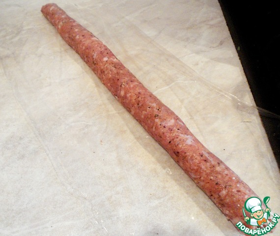 Свернуть при помощи пленки в тугой рулет-колбаску.