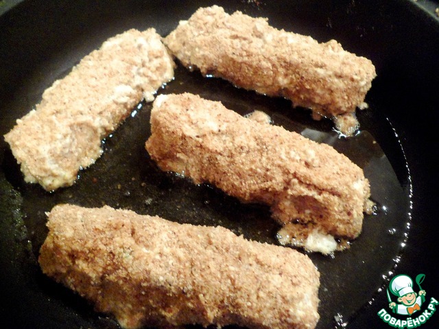 Каждый рулетик обмакнуть сначало в желтковую смесь, затем в сухари, далее в белок и опять в сухари.