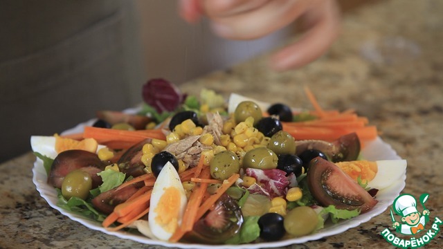 | Ensalada mediterranea. Очень простой и очень популярный в Испании салат - в жаркое время года он может пожалуй заменить полноценный обед. В каждой стране, даже в каждом регионе более-менее большой страны есть салат, который местные жители едят наиболее часто. В Испании, по крайней мере на Коста бланке, это ensalada mediterranea (средиземноморский салат) или ensalada mixta (смешанный салат). Отличие по большому счету только одно - в средиземноморском масло всегда оливковое, в смешанном может быть любое растительное. Не ждите точного рецепта - его не существует. Я же расскажу, как чаще всего его готовят в наших краях. |