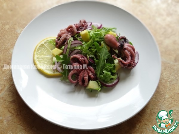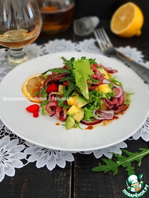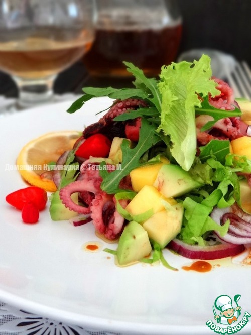 | Вкусный, яркий и полезный салат с осьминогами под чесночной заправкой с добавлением острого перчика пири-пири! |