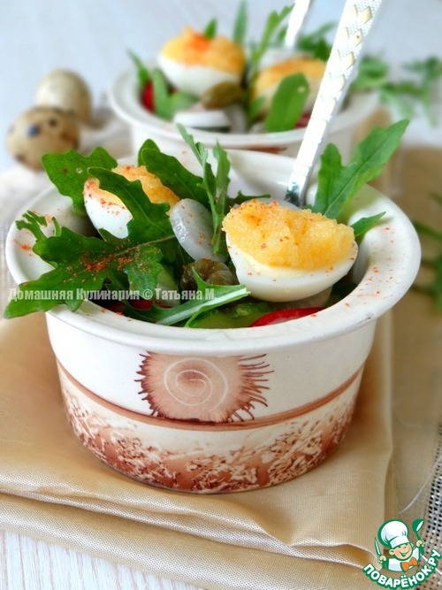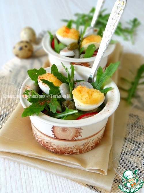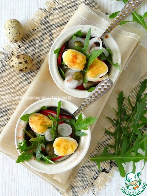 | Салат для любителей руколы и каперсов! С копченой икрой, овощами и соевым соусом с оливковым маслом! |