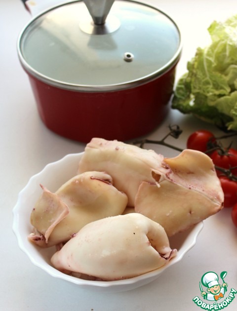 Кальмары вымойте, почистите.