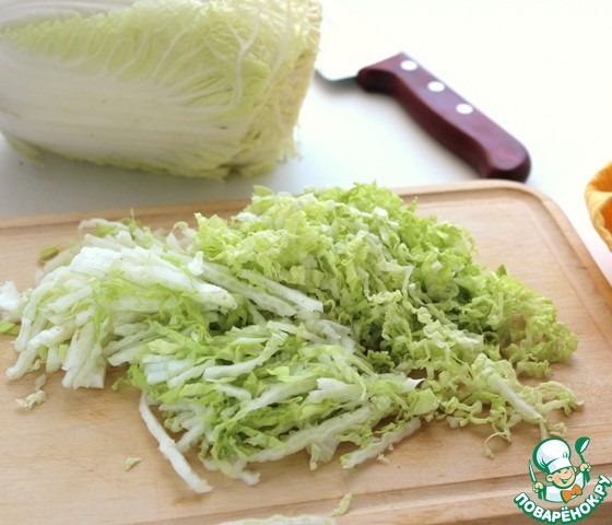 Пекинскую капусту нарежьте соломкой.