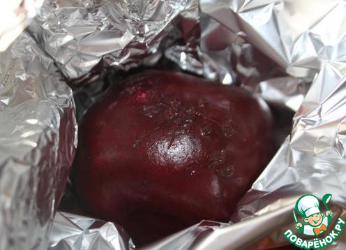 Свеклу завернуть в фольгу и запечь в духовке до готовности