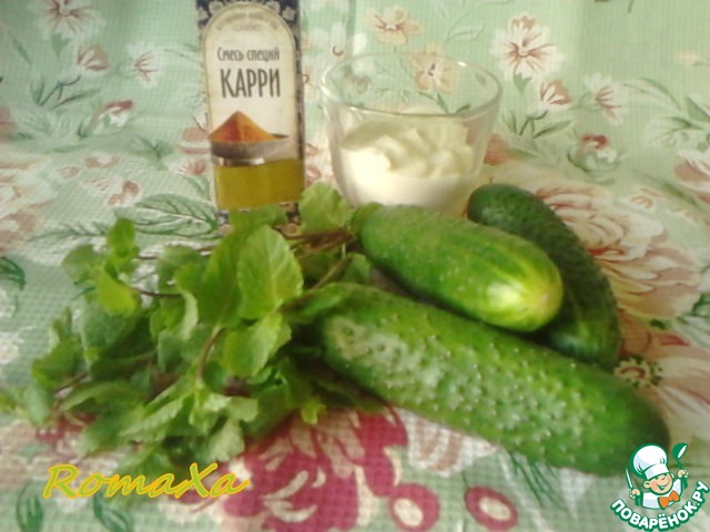 Йогурт я использовал магазинный "Греческий", т. к. он более густой, жидкий лучше использовать для соуса райта. Перемешиваем его со специями, в оптимале это молотая зира (кумин), у меня же карри (эта специя мне больше нравится), заправляем огурцы, перемешиваем и убираем на часик в холодильник.