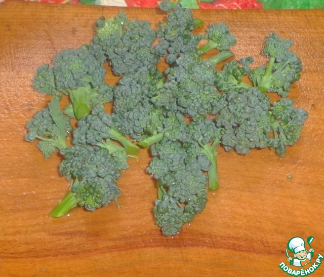 Отварить брокколи в воде и прополоснуть холодной водой.