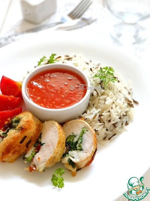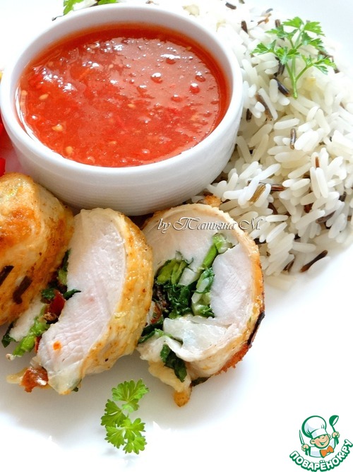 | Рулетики из куриной грудки, быстрого приготовления с зеленью, чесноком и паприкой! За счет минимальной термообработки, получаются очень сочными, нежными... за счет начинки - еще и очень ароматными! В сочетании с рисом и томатами в собственном соку - привлекательное внешне, очень вкусное и полезное быстрое блюдо! |