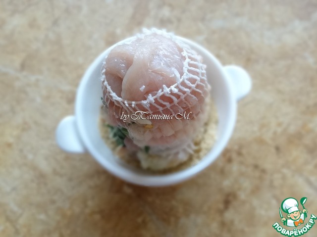 Выложить начинку на грудку;