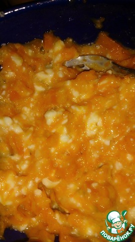 Морковь отвариваем (так она будет как пюре, мягкая) и трем на мелкой терке, чеснок давим через пресс, сыр разминаем вилкой., добавляем молоко, и все смешиваем до однородности. Можно слегка подсолить.