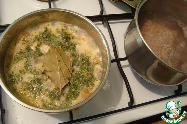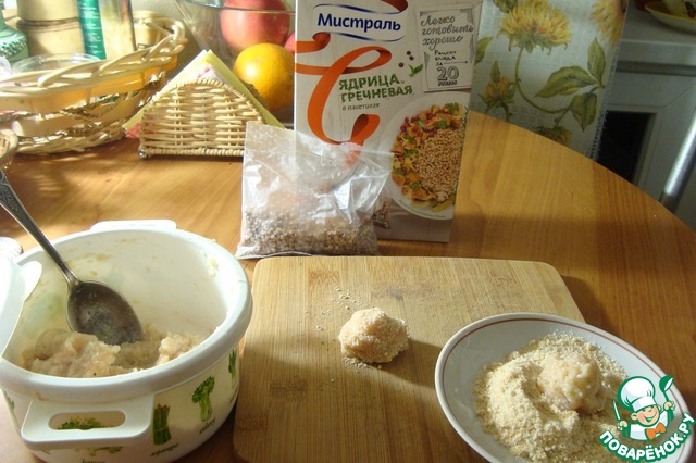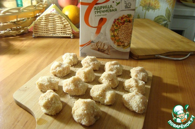 Шарики готовы, пока закипала вода под гречку. Варим гречку, согласно рецепту на упаковке.