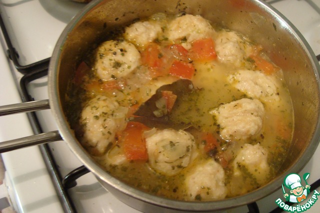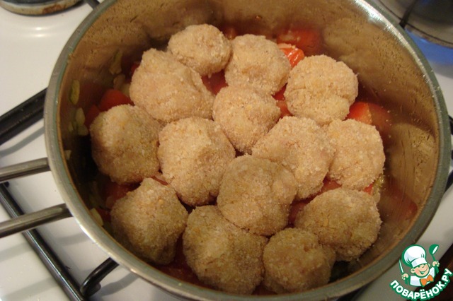 Сверху выкладываем шарики и наливаем воды, чтобы их закрыть. Воду посаливаем по вкусу.