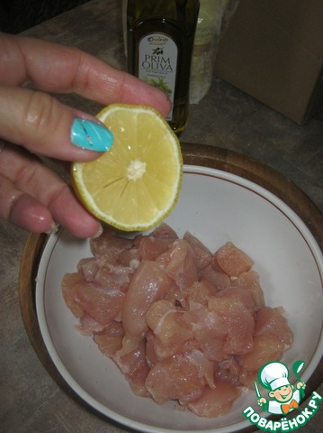 Обильно полить лимонным соком-не бойтесь! курица как и рыба-очень дружны с лимоном. Перемешать