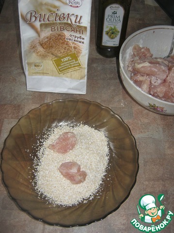 В оригинале -картофельный крохмал и мука для панировки. я сделала замену-для панировки полезные и вкусные отруби, а картофельный крахмал заменила на кукурузный