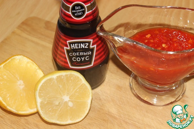 Лимон, соевый соус и аджику перемешать.