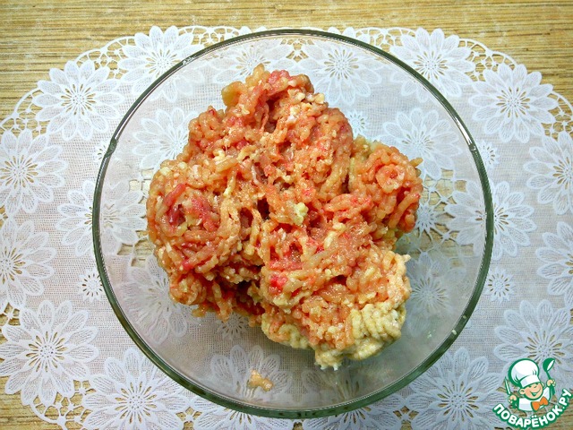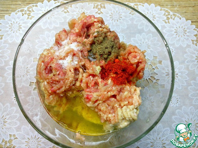 Добавляем в фарш соль, перец, белки яичные, я добавила еще паприку. Хорошенько вымешиваем и отбиваем.
