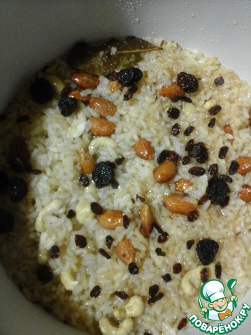 Через 5 минут добавить изюм и барбарис, посолить. Рис будет готов, когда "выпьет" всю воду.